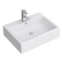 (1) Nova 600 x 450mm White Wall Hung Slimline Countertop Basin Shelf
