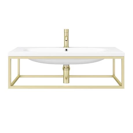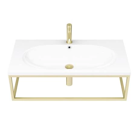 The smart and space-saving Arezzo 900mm large wall mounted basin comes complete with a supporting brushed brass steel towel rail frame, perfect for creating a stunning, fashionable and chic bathroom interior.
