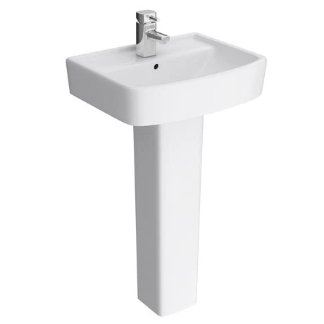 With its sleek clean lines and contemporary curves, this Brooklyn pedestal sink will bring a refined look to modern spaces. This bathroom sink comes with two widths of basin – 520mm and 600mm – so you can choose which best suits your room. Made from glossy and durable white china, it features one tap hole and is designed for use with a mono basin mixer tap.