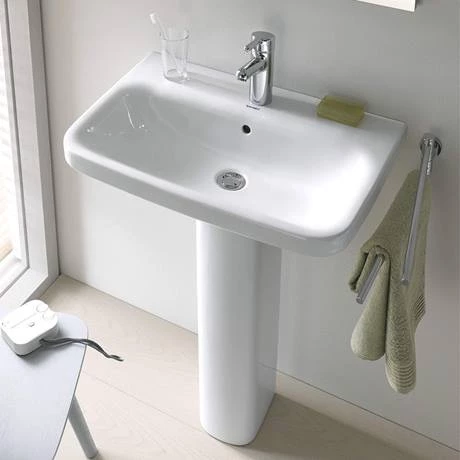 Simple, yet formal, the DuraStyle basin and full pedestal blends harmoniously into any bathroom setting. Made from high quality ceramic and finished in White Alpin, this basin comes with a single tap hole and built-in overflow.