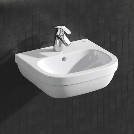 The Euro Ceramic range has been specially designed to match up an excellent performance with an attractive price. This Euro Ceramic 450mm wall hung basin is a modern classic with good looks and delicate lines. It features a single tap hole and built in overflow. Manufactured from high grade vitreous china and finished in Alpine White, it’s durable surface will look good for years to come.Â