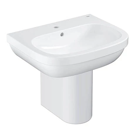 The Euro Ceramic range has been specially designed to match up an excellent performance with an attractive price. This Euro Ceramic 550mm basin and half pedestal will make a subtle difference to any bathroom look. It features a single tap hole and built in overflow. Manufactured from high grade vitreous china and finished in Alpine White, it’s durable surface will look good for years to come.Â