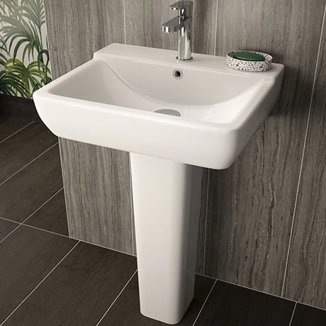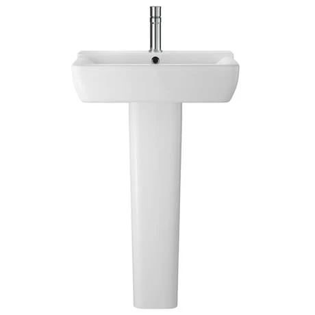 The soft square profile of the Arlo basin with full pedestal, is the perfect match for the different pan design options. Made from high quality vitreous china, this slimline range will look stylish in any bathroom or en-suite. Features a wide tap deck which offers additional space for your toiletries.
