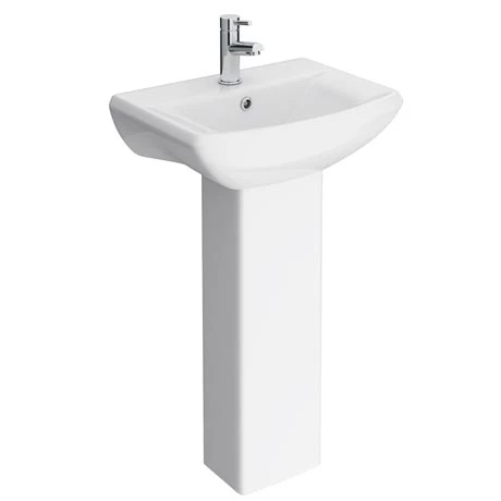 The stylish contemporary Asselby cloakroom basin with pedestal designed and manufactured by leading bathroom brand Nuie, perfect for creating a neat, contemporary look and feel to your new bathroom. The Asselby basin is supplied with a full pedestal which will conceal unsightly pipework from view. Designed to be used with a Mono basin mixer (not Included).