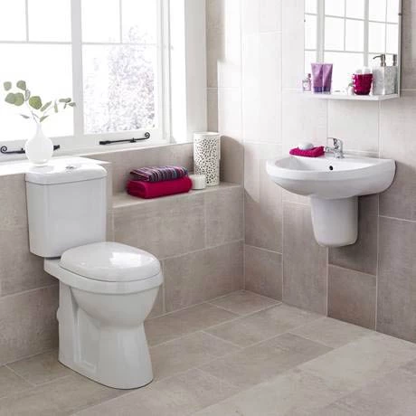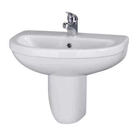 The Caledon wall mounted 555mm wide basin from Nuie is supplied with a semi pedestal which will conceal unsightly pipework from view and leaves the floor beneath the basin visible creating the illusion of space, ideal for cloakrooms, en-suites or smaller bathrooms.