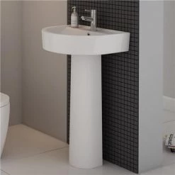 Compact bathroom? This Othello Wall Hung Corner Basin offers a unique way to save space. Eye-catching and durable, it’s made from tough ceramic with a gleaming white gloss finish. The design has a sleek and modern look, while its small ledge offers room for an equally contemporary tap. Consider opting for a cylindrical mixer to complement the round shape of the basin.