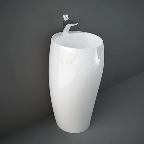 The stylish and sophisticated RAK Cloud 50cm free standing basin features curved soft lines ideal for the modern bathroom. Made from high quality ceramic, the basin comes with a single tap hole and supplied with a matching ceramic waste cover. For peace of mind all RAK sanitaryware is guaranteed for 25 years.Â
