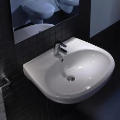 This Kalahari-N basin is designed to be wall mounted, this basin is also available with a vanity unit (separate listing). When wall mounting we recommend that the wall fixing kit supplied is used, this should be installed into a brick wall. Installation in studded walls is an option but we recommend seeking professional builders advice for fixing method.
