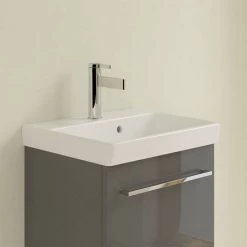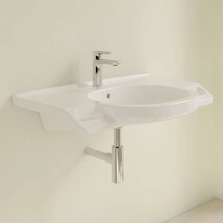The ViCare collection from Villeroy & Boch brings accessible bathroom design to a new standard. The accessible solutions make the bathroom safer, meet the most demanding hygiene requirements and provide maximum comfort. This wall hung ViCare 810mm washbasin is made from high grade sanitary ceramic and features a single tap hole and built in overflow.