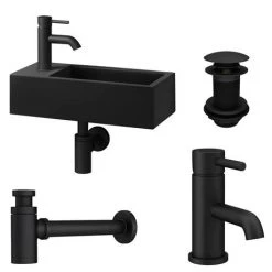 Arezzo 410 x 210mm Square Wall Hung Cloakroom Basin – Matt Black